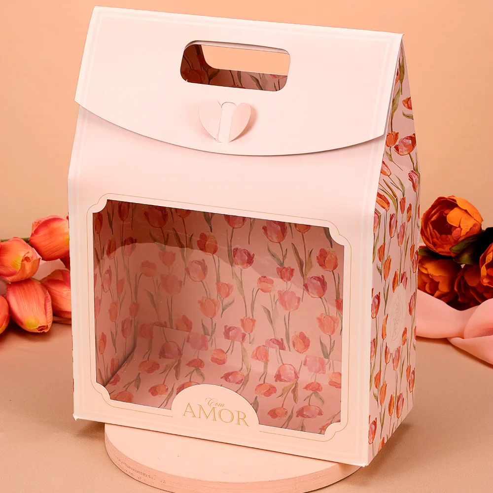 A Sacola Boca de Palhaço com Visor Grande Tulipas é uma embalagem elegante e delicada, ideal para montar kits de doce, com charme e elegancia.