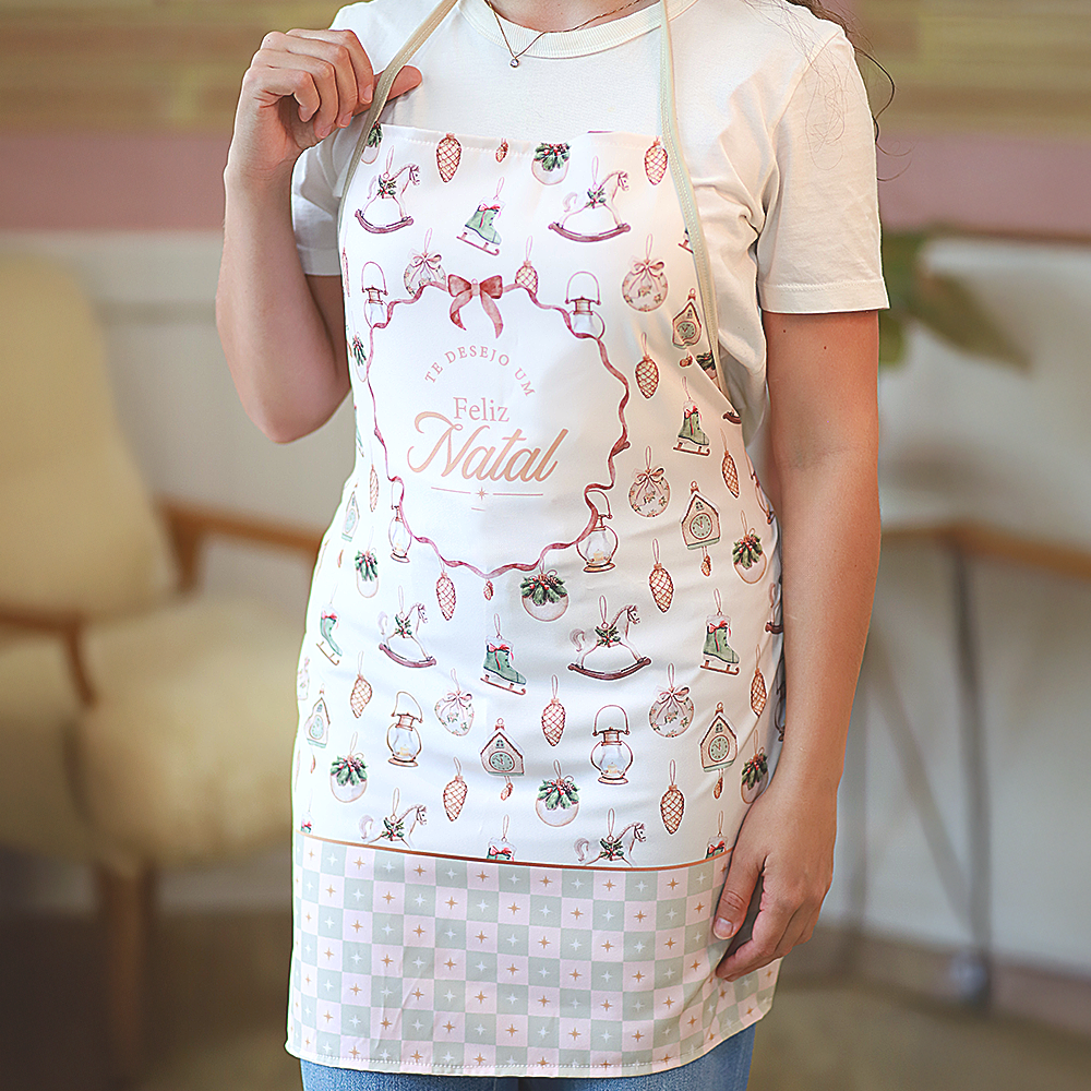 - Produzido em 98% poliéster e 2% elastano, oferece leveza e flexibilidade, ideal para o uso no preparo de receitas natalinas ou em momentos especiais.