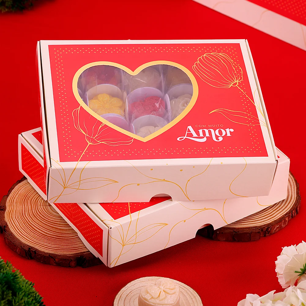 Ideal para embalar doces finos com sofisticação, esta caixa combina praticidade e estética romântica. Perfeita para presentear com carinho e sofisticação, ela transforma cada entrega em uma experiência única e memorável para seus clientes.