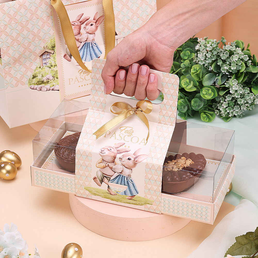 Esta caixa foi desenvolvida para acomodar ovos de Páscoa com elegância e praticidade.