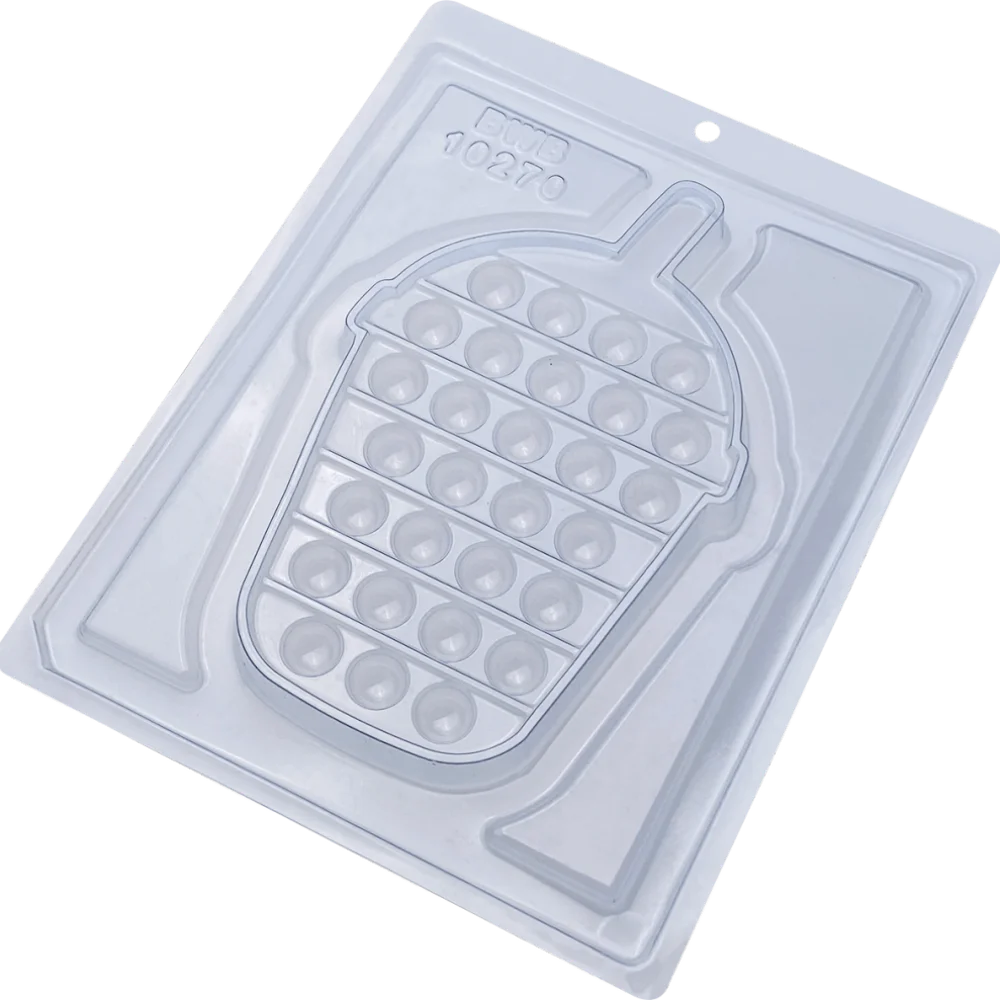 Forma com 1 cavidade, ideal para produção prática de chocolates temáticos no formato divertido de milkshake, com efeito "pop it", perfeito para o público infantil. Proporciona fácil manuseio, ótimo acabamento e resultados consistentes.