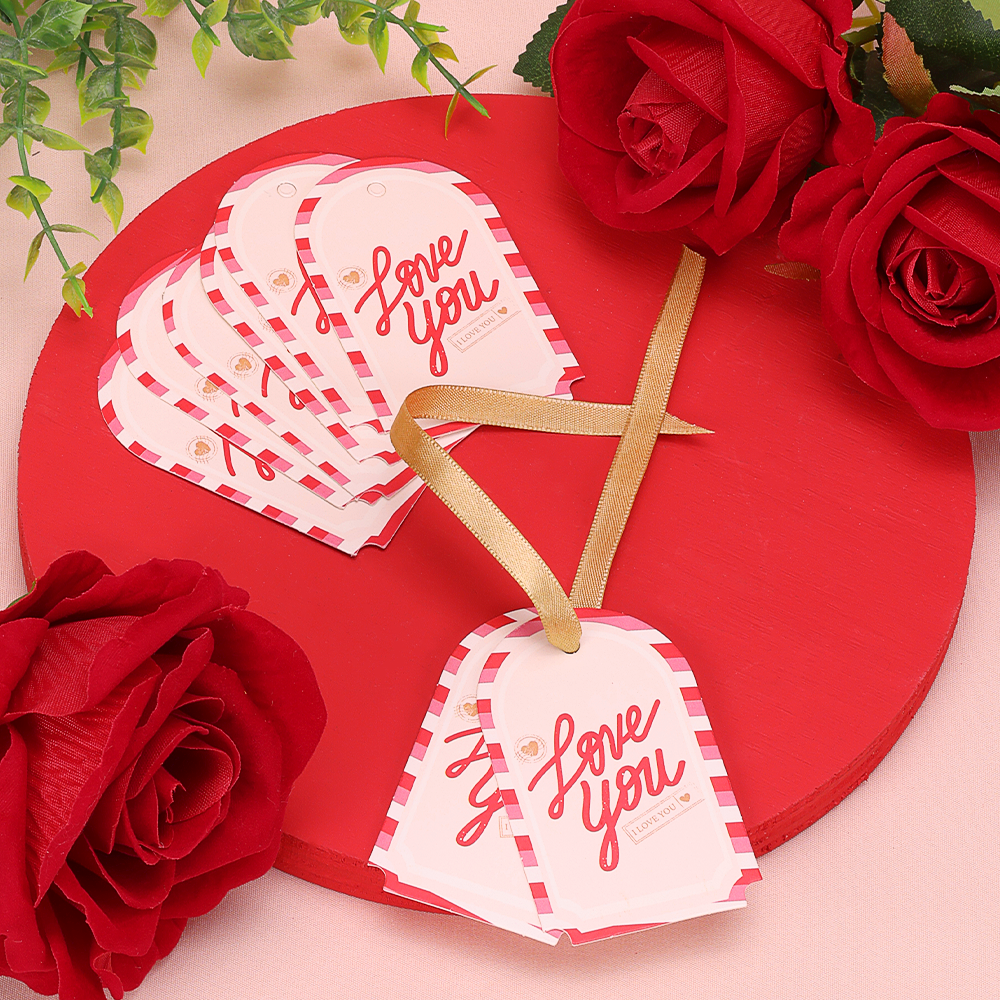 A estampa da tag traz uma charmosa escrita "Love You" em vermelho com detalhes em dourado ao fundo.